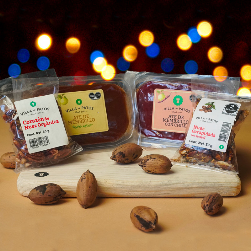 Incluye Ate de membrillo (350g), Ate de membrillo con chile (350g), Cora-